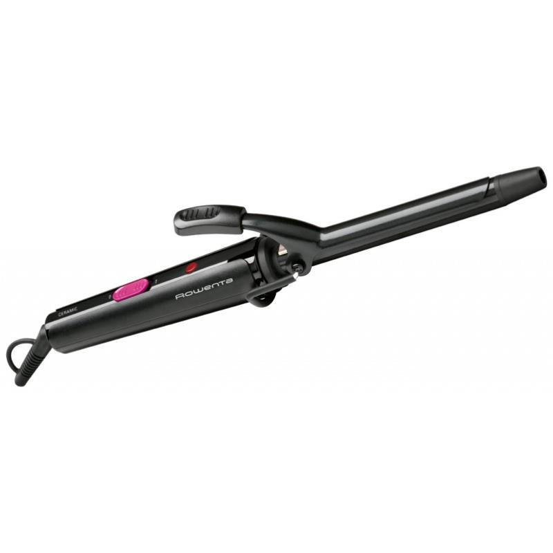 Rowenta Curler 2 CF2119. Tipo: Modelador de cabelo, Tecnologia: Quente, Tipo de controlo: Barra de deslocamento. Cor do produto: Preto, Material da prancha: Cerâmica, Pendurado como: Gancho. Comprimento do fio: 1,8 m, Indicadores LED: Pó, Cor LED: Vermelho. Cor do cabo: Preto. Potência: 25 W, Fonte de alimentação: AC, Voltagem de entrada AC: 110 - 240 V