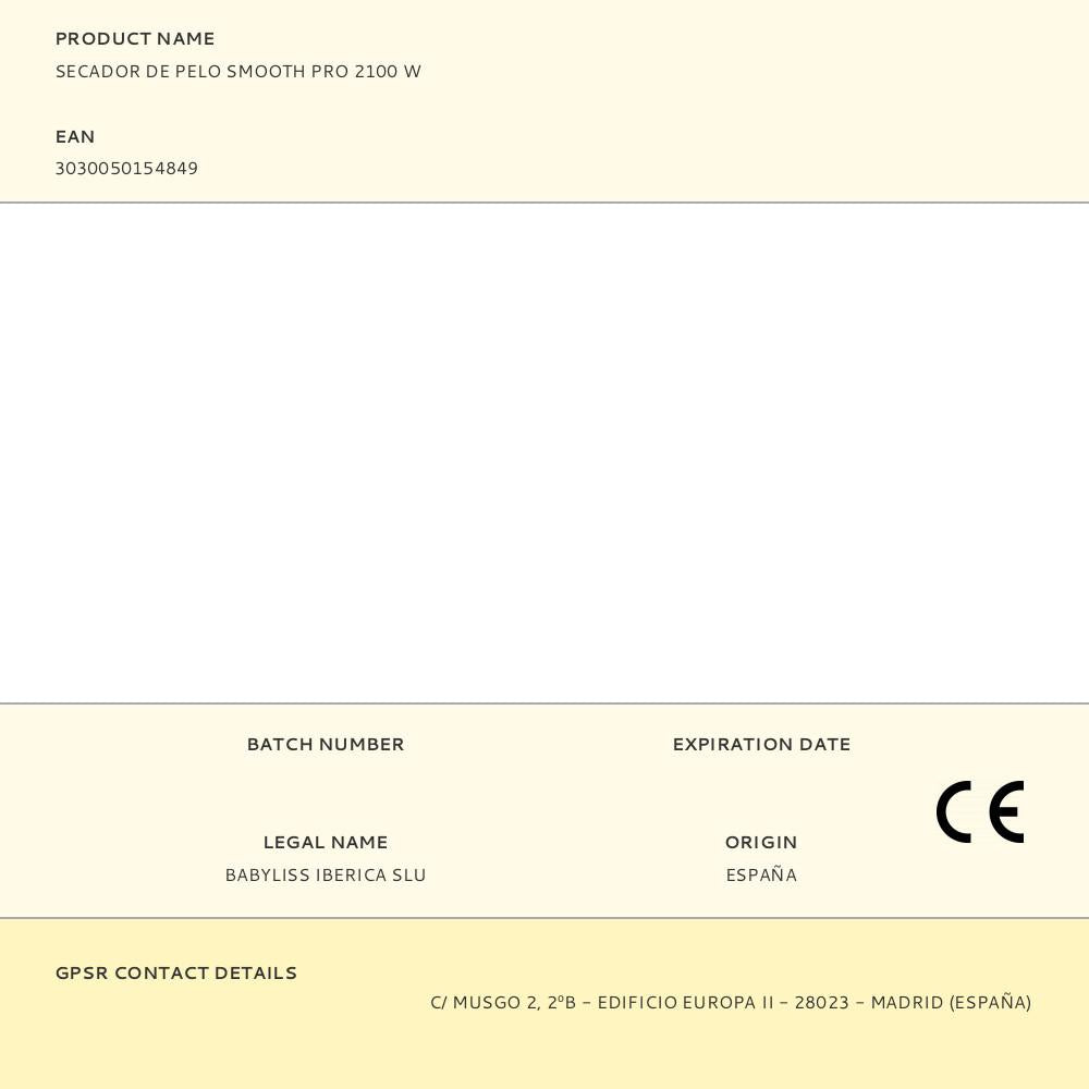 SECADOR DE CABELO BABYLISS 2100W.DIF.SMOOTH -6709DE