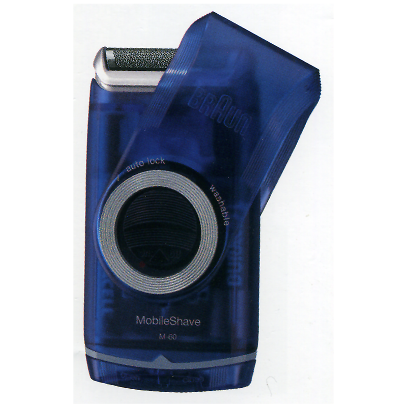 Braun PocketGo M60b. Sistema de barbear: Máquina de barbear com lâminas que se adaptam ao contorno do rosto, Material da lâmina: Aço inoxidável, Tipo de controlo: Botões. Cor do produto: Preto, Azul. Fonte de alimentação: Bateria, Tipo de bateria: AA, Tempo de funcionamento: 60 min. Peso: 190 g. Tipo de embalagem: Caixa, Comprimento da embalagem: 35 mm, Profundidade da embalagem: 100 mm