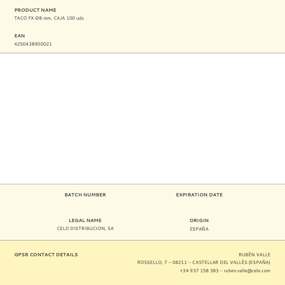 CAIXA 100 UNID. BUCHA FX Ø8MM CELO