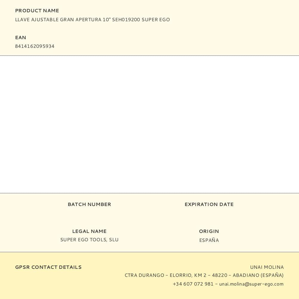 Chave ajustável abertura grande 10´´ seh019200 super ego. forjada em aço especial cromado. escala ennm e polegadas. duração e resistência garantidas. cabo de tato suave para uma agarre seguro. comprimento 250mm, 10´´ - 250mm