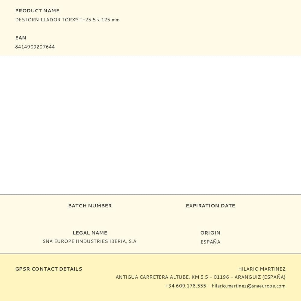Chave boca torx® t-25 cabo bimaterial 5x125mm 414-25-125. para parafusos de cabeça torx®. ponta pavonada para proporcionar a máxima precisão. para uso intensivo. cabo bicomponentes para um agarre confortável e uma grande transferência de par. a forma do cabo impede que a ferramenta rode. com oríficio para pendurar. vara de aleanação de aço de alto rendimento, cromado e totalmente temperado. chave com o tamanho e número de serie marcado de forma permanente para facilitar a sua identificação