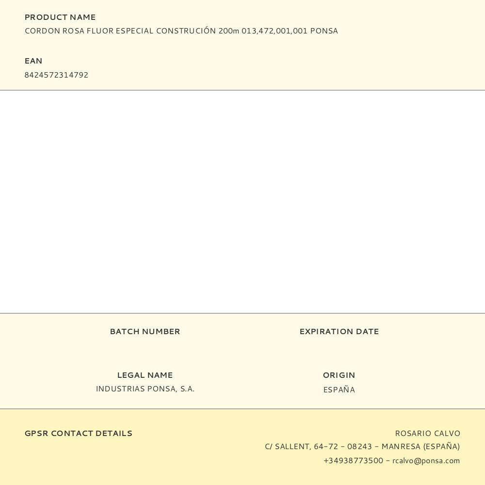 CORDÃO ROSA FLUOR ESPECIAL CONSTRUÇÃO 200M 013,472,001,001 PONSA