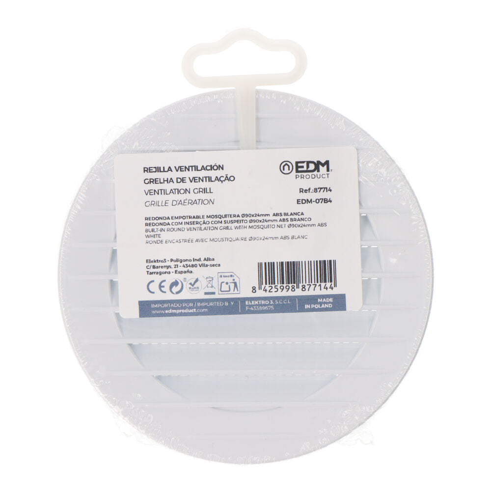 GRELHA DE VENTILAÇÃO REDONDA COM INSERÇÃO, ABS, COM SUSPEITO Ø90M