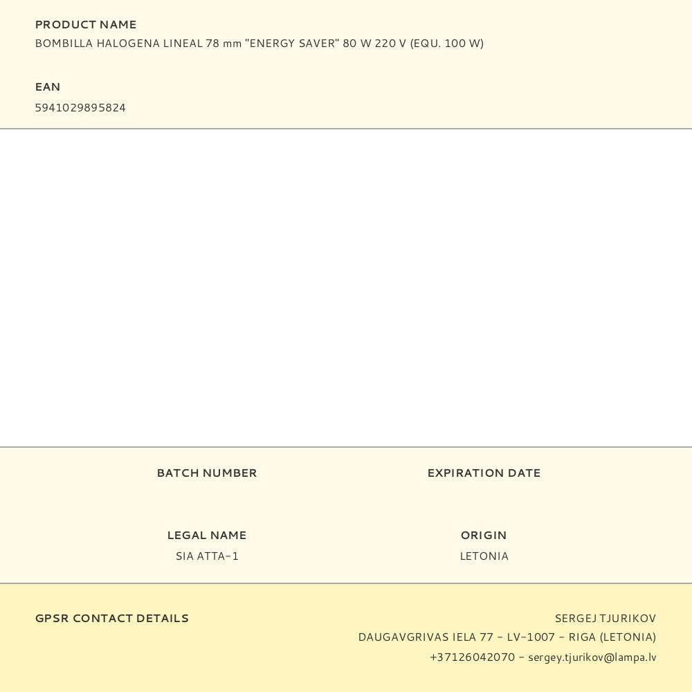 Lâmpada de halogénio linear 80w (equ. 100w). 1000lm tamanho: 78mm ´´energy saver´´ vida estimada: 2000h. tipo de luz: ultra brilhante. ângulo de abertura: 360°. regulável. tensão: 220-240v