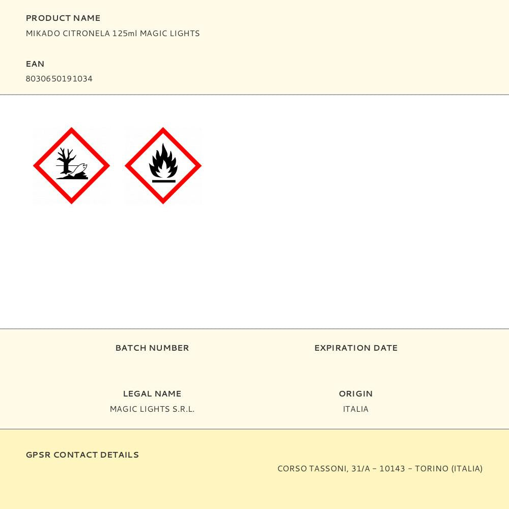 MIKADO CITRONELA 125ML MAGIC LIGHTS