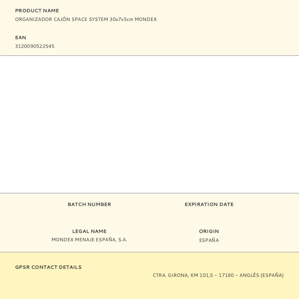ORGANIZADOR DE GAVETAS SPACE SYSTEM 30X7X5CM MONDEX