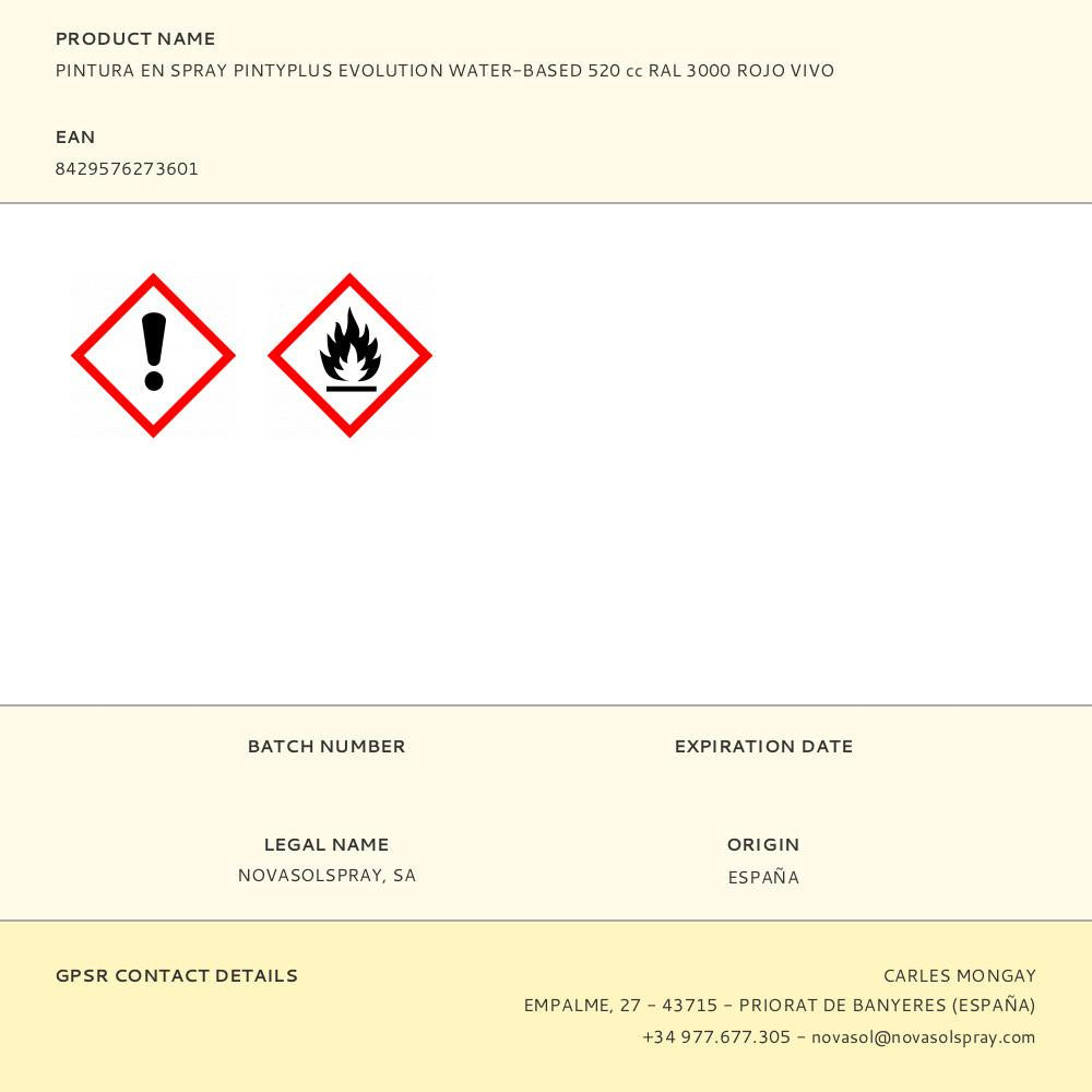 SPRAY PINTYPLUS EVOLUTION WATER-BASED 520CC RAL 3000 VERMELHO VIV