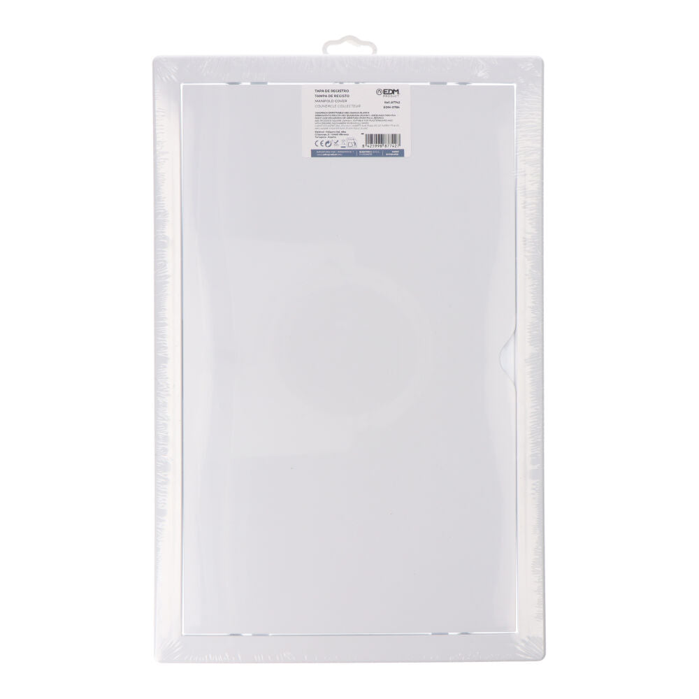 Tampa de registro retangular em plástico de encastrar, medida de encaixe 25x40cm, tamanho 27,5x42,5cm, adequado para pladur e com mecanismo de abertura (push-pull), branca