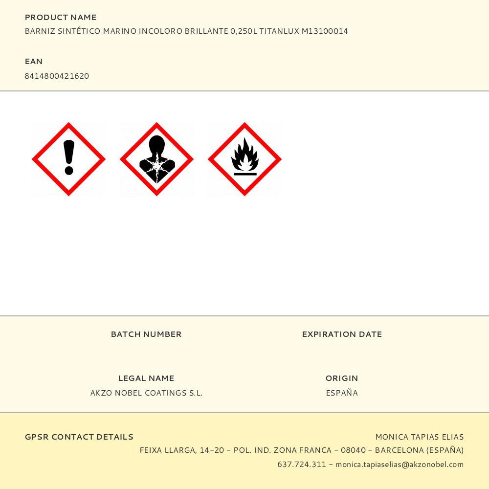 Verniz sintético marinho brilhante incolor 250 ml. verniz de alta resistência a ambientes marinhos, grande dureza e elasticidade. grande poder de humectação e aderência sobre madeira. contém filtros ultravioletas. para envernizar madeira de barcos recreativos, de pesca e outras construções em zonas costeiras ou em ambientes muito humidos