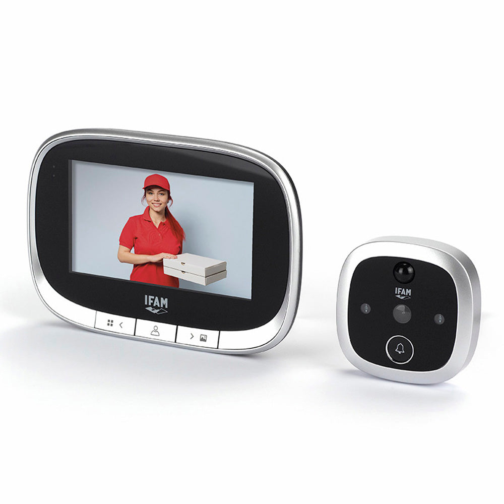 Ecrã lcd tft de 4,3u201d ângulo de visão amplo: 170 graus. visor com campainha incorporada. guardar fotos e vídeos na memória interna. opção de adicionar memória externa com cartão micro sd até 32 gb. tem um sensor pir para detetar movimento. tem 2 leds infravermelhos para visão noturna. funciona com bateria de lítio recarregável. o ecrã pode desligar automaticamente após alguns segundos. adequado para portas de 35 a 120mm de espessura. adequado para diâmetros de furo de porta de 15 a 28mm. funciona com bateria recarregável usb. fácil instalação. acabamentos preto e prata