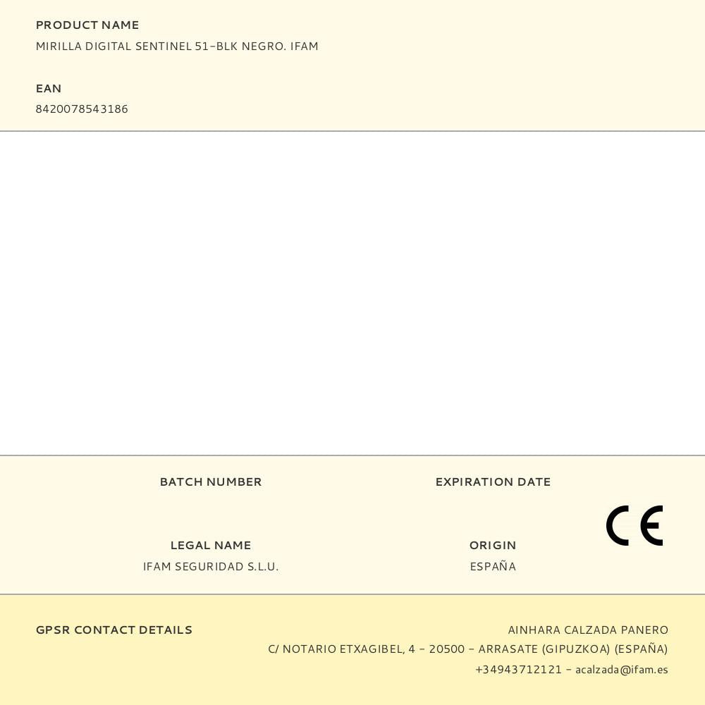 VISOR COM CÂMARA DIGITAL SENTINEL 51-BLK PRETO. IFAM