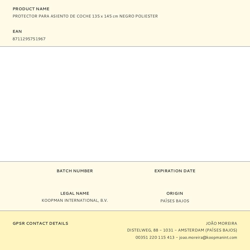 Protetor de assento de carro em poliéster preto, 135 x 145 cm