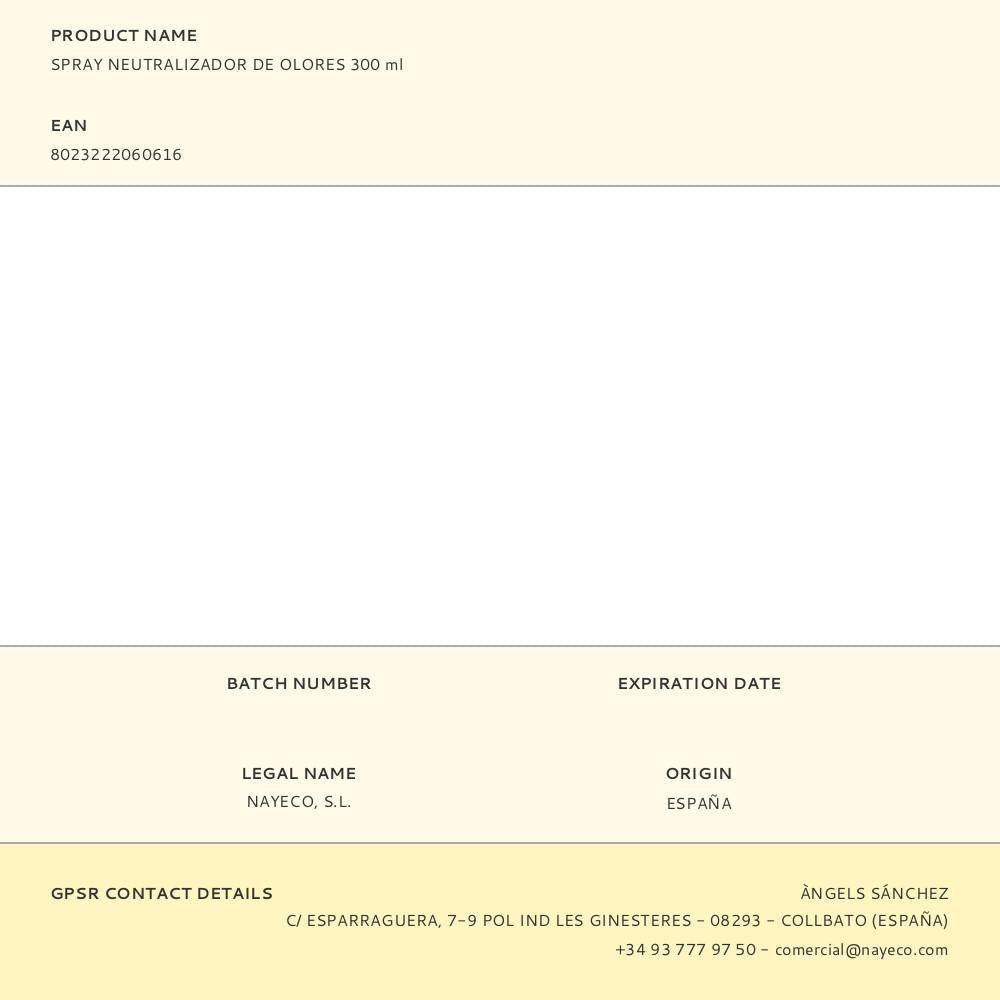 Spray neutralizante de odores 300 ml. elimina os maus cheiros. as moléculas desodorantes especiais não cobrem os maus odores, mas os captam e eliminam. seguro para o animal. ajuda a combater os maus odores devidos aos excrementos. não pulverize diretamente no animal