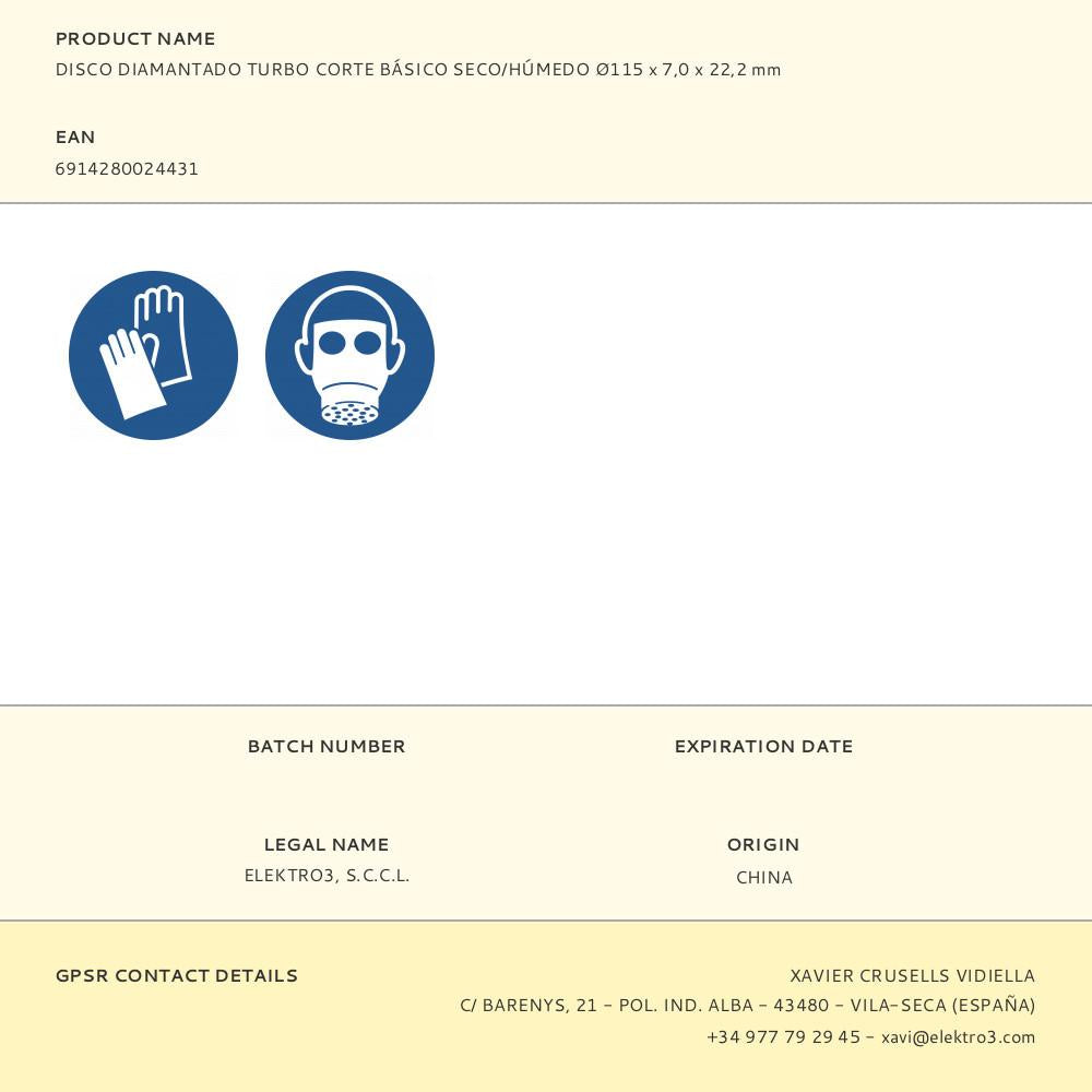 DISCO DIAMANTADO TURBO BASIC, Ø115 X 22,2 MM