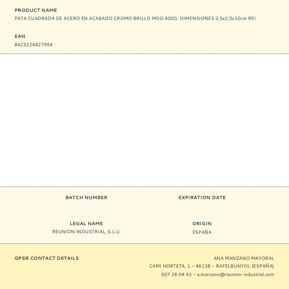 Pé quadrado de aço de estilo moderno para móveis. graças à versatilidade deste modelo de projetos de bricolagem, diy ou restauração, assim como, para todo o tipo de móveis ou espaços comerciais. altura do pé 10cm. fabricado em aço e acabamento cromado brilho. sistema de fixação mediante parafusos. não inclui parafusos. medidas: 2,5x2,5x10cm (largura/profundidade/altura). peso máximo recomendado: 150kg. rei
