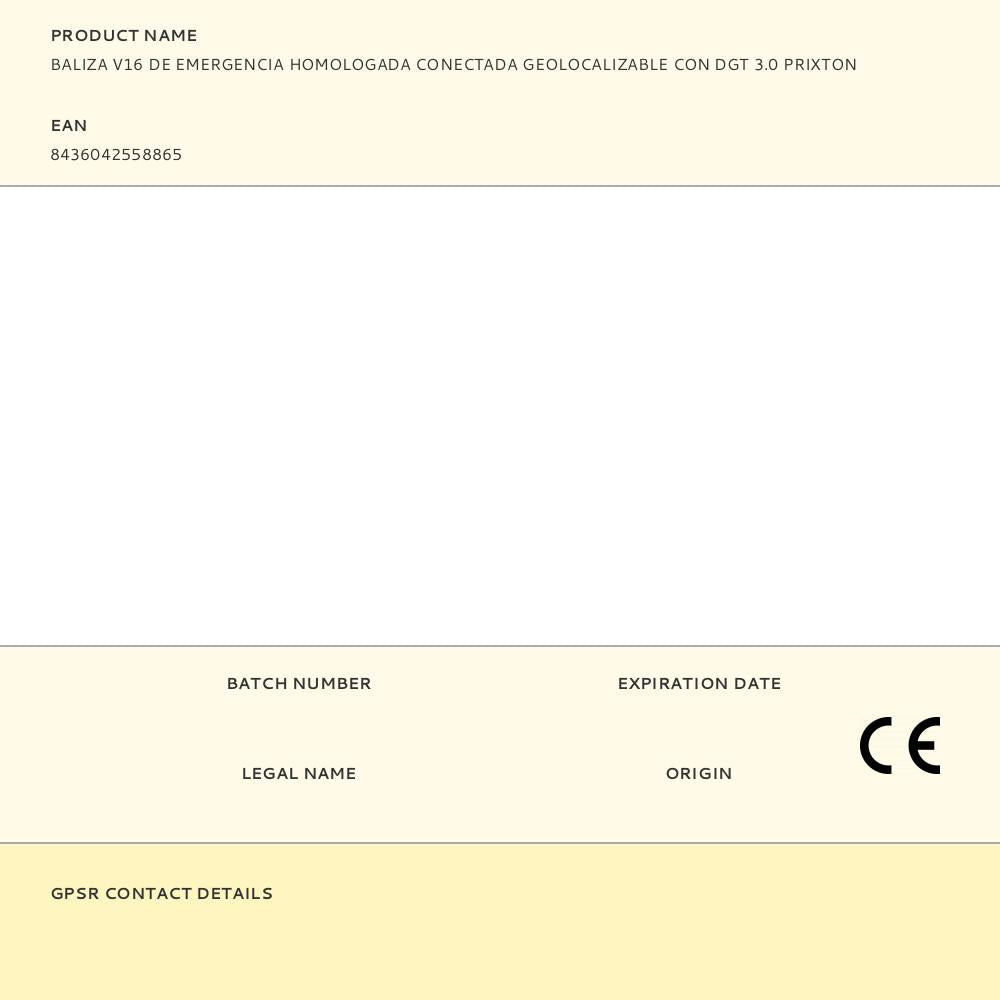 Sinalizador v16 de emergência homologado conectado geolocalizável com dgt 3.0 prixton sim válida até 31/01/2038 ip54, visível a 1 km 360° -10 e 50°c fixação magnética máximo 2,5 horas de autonomia, funciona com pilhas 3 x aa incluídas pode ser alimentado com o cabo 36088, apresentado em expositor de 12 un.