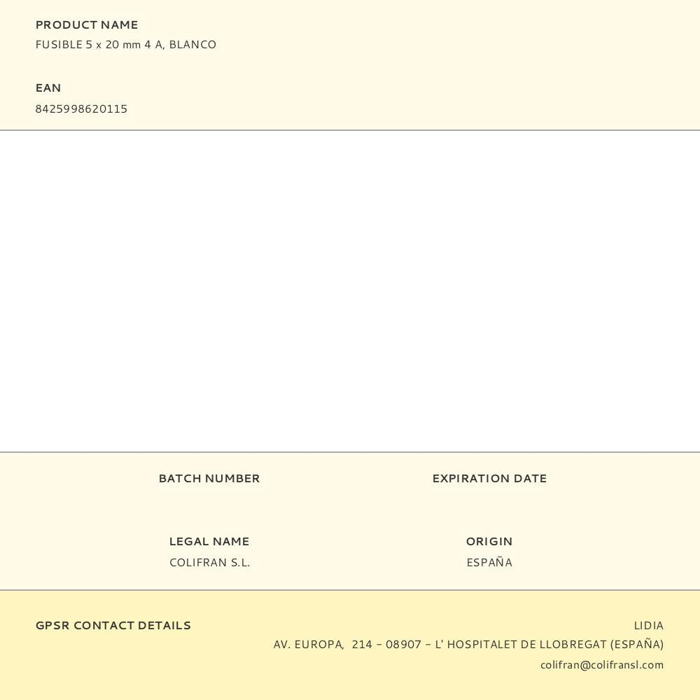 Fusível 5x20mm, 4a, branco