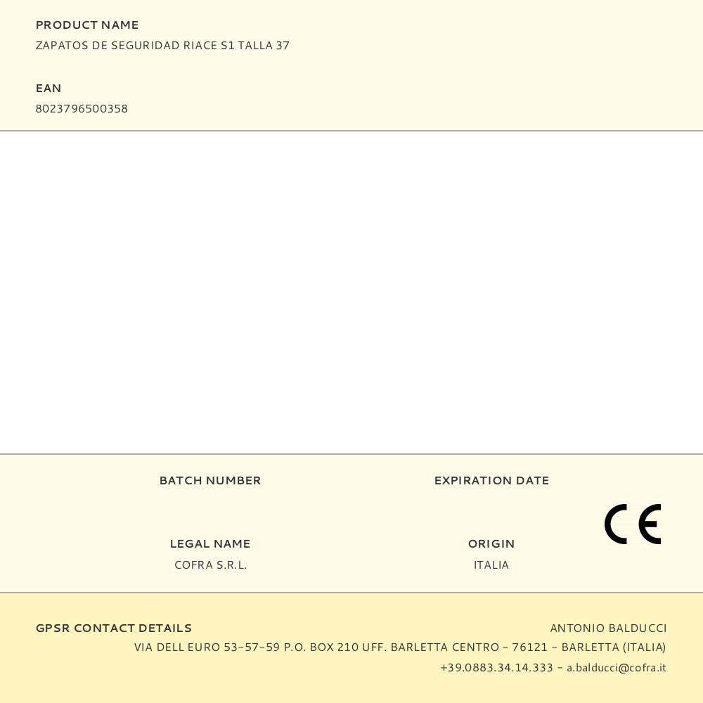 SAPATOS DE SEGURANÇA COFRA RIACE S1 TAMANHO 37