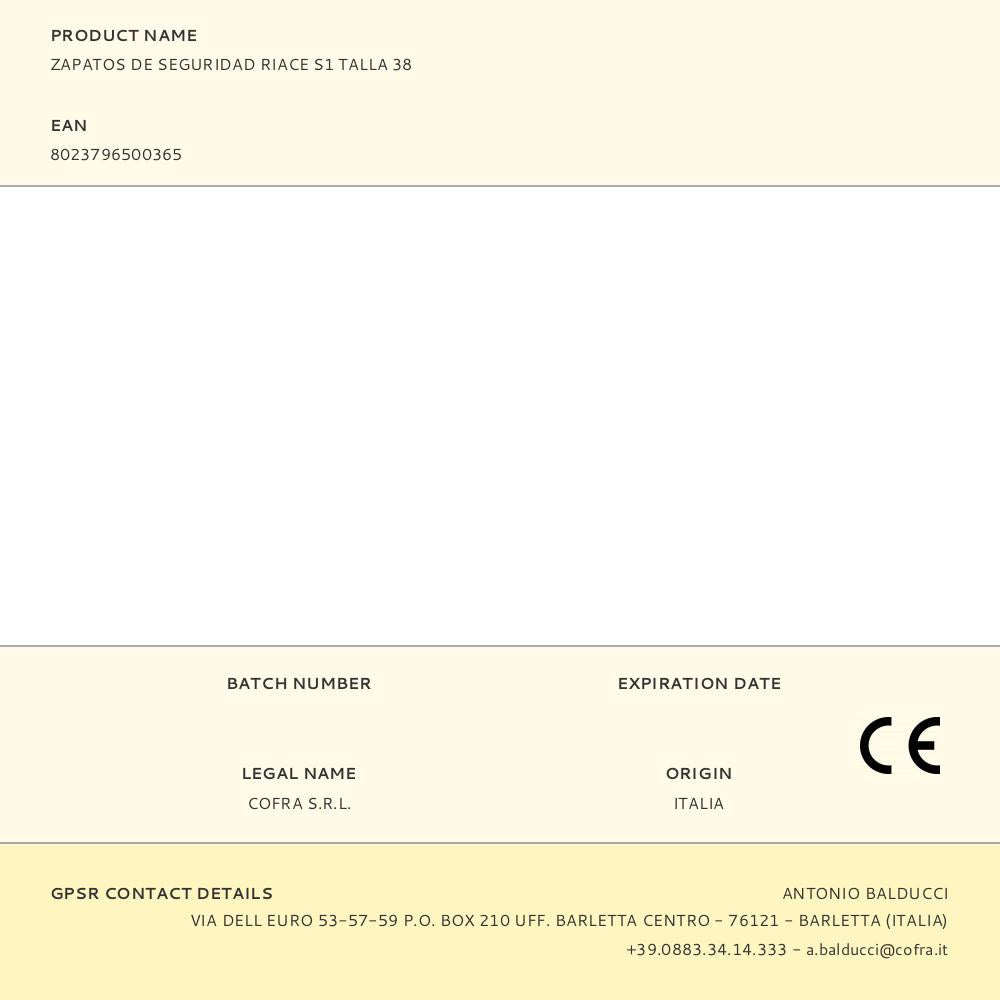 SAPATOS DE SEGURANÇA COFRA RIACE S1 TAMANHO 38