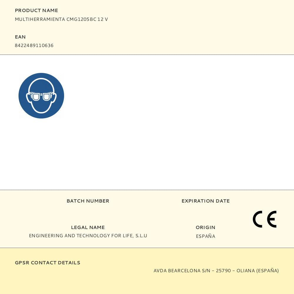 Ferramenta multifuncional 12 v, bateria: 2,0 ah (bateria removível e intercambiável com o resto das ferramentas da mesma gama), rpm: 5000-25000 rpm, número de velocidades: 6, indicador de estado da bateria, tempo de carregamento: 3-5 h, botão de bloqueio, mandril: ø2,4 mm, possui 73 acessórios: carregador, conjunto de 13 brocas e diferentes cabeças para cortar, limar, polir, lixar, etc