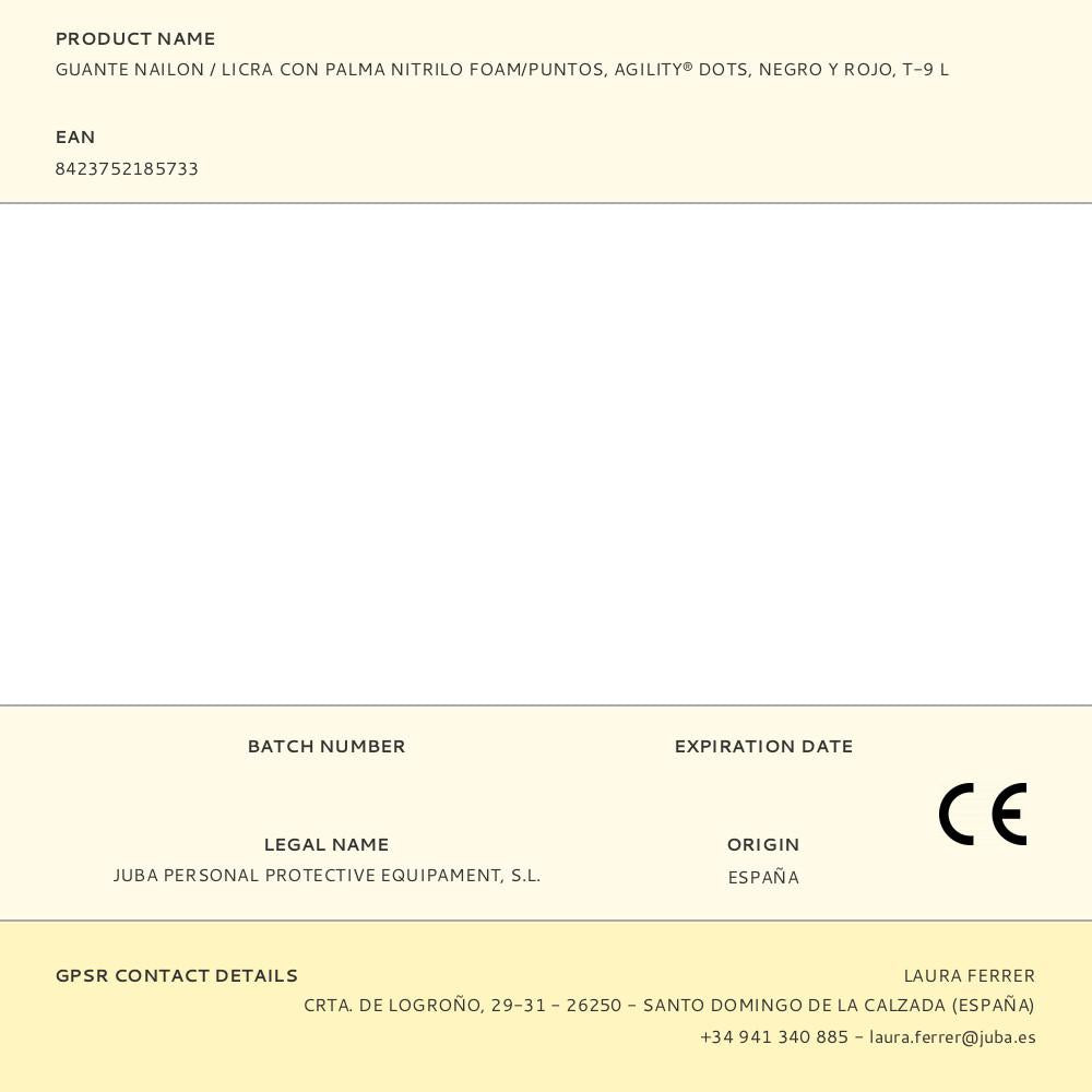 LUVA DE NYLON/LYCRA COM PALMA EM ESPUMA DE NITRILO/PONTOS, AGILIT
