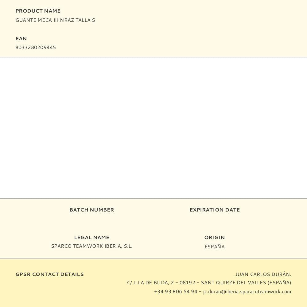 S.OF. LUVAS SPARCO MECA III NRAZ TAMANHO S 002093NRAZ SPARCO