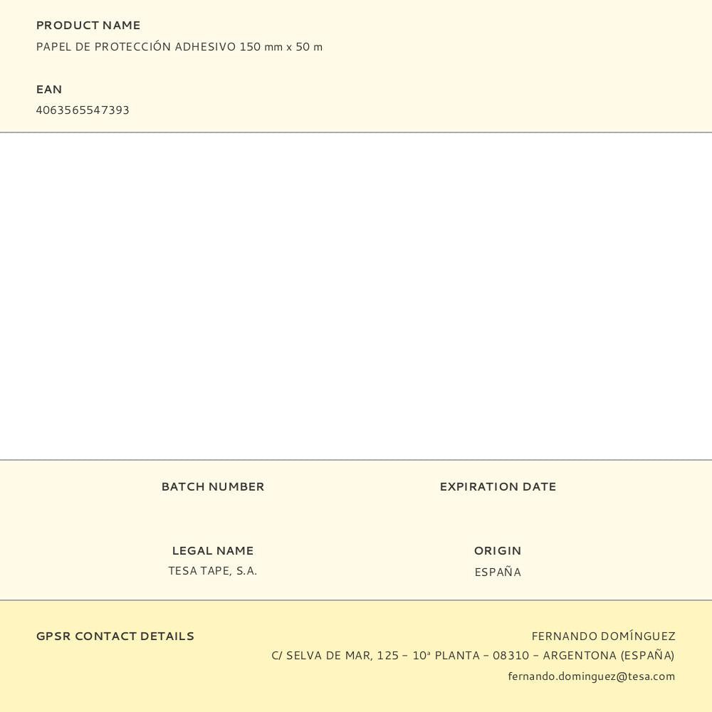 O papel de proteção autoadesivo é um produto de máscara feito com papel-cartão especial que cumpre as normas fsc® para papel reciclado. protege a superfície em segurança e foi concebido para evitar riscos e transferência de tinta. pode ser facilmente cortado na largura necessária para otimizar a proteção. adesão bem à maioria das superfícies, garantindo que se mantém no lugar, mas pode ser facilmente reposicionado e removido sem deixar resíduos de adesivos, facilitando a limpeza. tamanho: 150 mm x 50 m