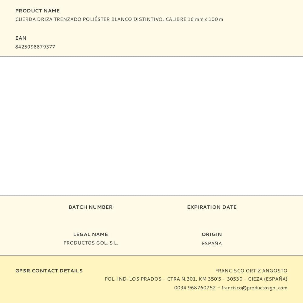 Corda de adriça com bainha de poliéster entrançado de alta tenacidade e núcleo de poliéster. produto flexível, submersível e boa aderência. absorve pouca água e elevada resistência ao contacto com produtos químicos. cordão ideal para toldos, construção, efeitos navais, agricultura, pecuária, campismo, diy. resistência à quebra: 1.500 kg, tamanho da bobine ø40 x 24 cm, tamanho do furo central ø3 cm
