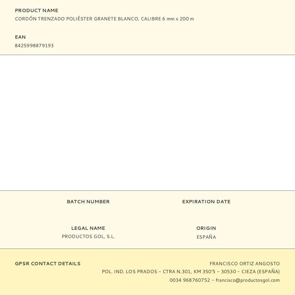 Corda trançada de poliéster de alta tenacidade, com tratamento uv. produto flexível, macio, resistente à abrasão e com elevada resistência ao contacto com substâncias químicas. material submersível e de baixa absorção de água. cordão ideal para toldos, persianas, roupas, estufas, gado, efeitos navais, bricolage. resistência à ruptura: 400 kg, tamanho da bobine ø15,5 x 25,5 cm, tamanho do furo central ø 2,5 cm