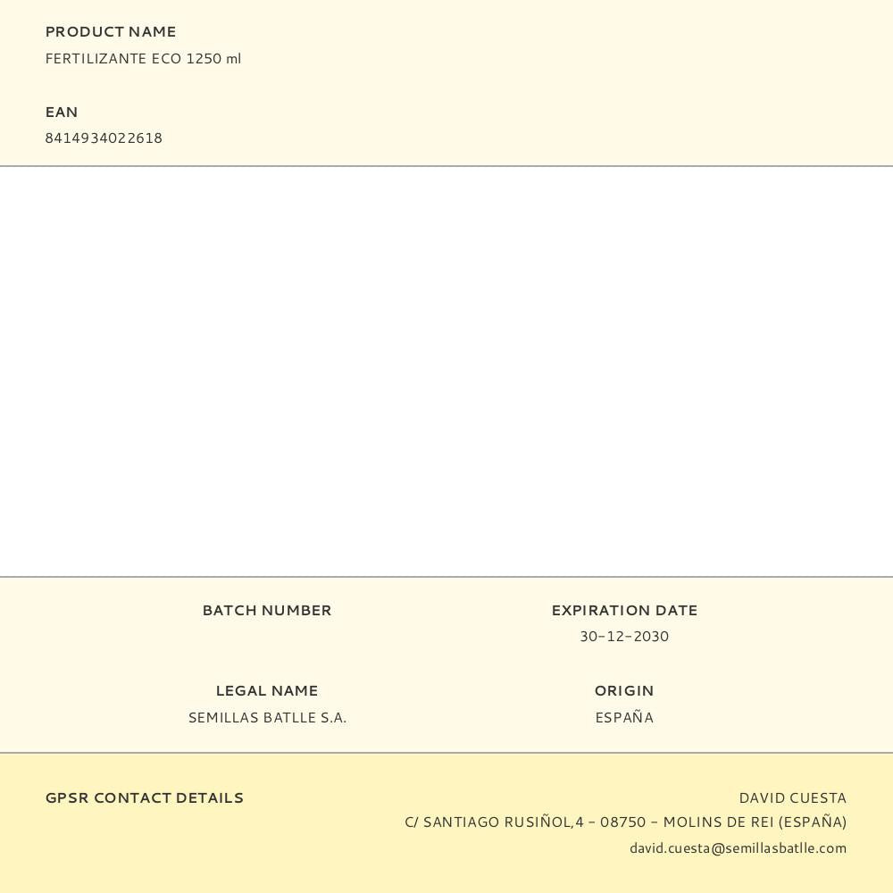 Fertilizante eco 1250ml agreen. o fertilizante ecológico verdy é um complexo nutritivo 100% natural de origem vegetal, utilizável em agricultura ecológica. apresenta uma lata proporção de matérica orgánica junto com nutrientes que promovem uma rápida ação bioestimulante à planta, sendo a sua assimilação fácil e rápida, para mostra os resultados em muito pouco tempo utilizável em todo o tipo de plantas e em todas as condições: interior, terraço, horta e jardim