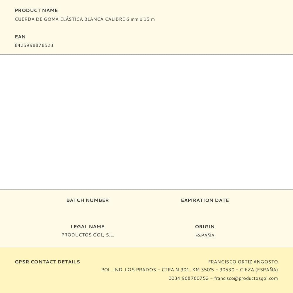 Corda de borracha elástica branca de alta tenacidade calibre 6 mm x 15 m