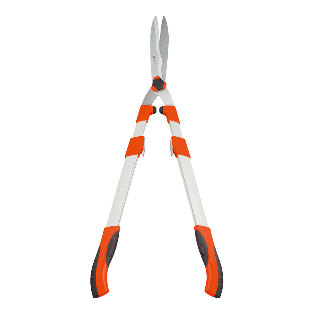 Tesoura corta sebes telescópico lâmina ondulada 73-87cm stocker. com cabo telescópico de alumínio. cabo ergonómico e antideslizante e lâmina ondulada. comprimento: 73-87cm peso: 1,10kg