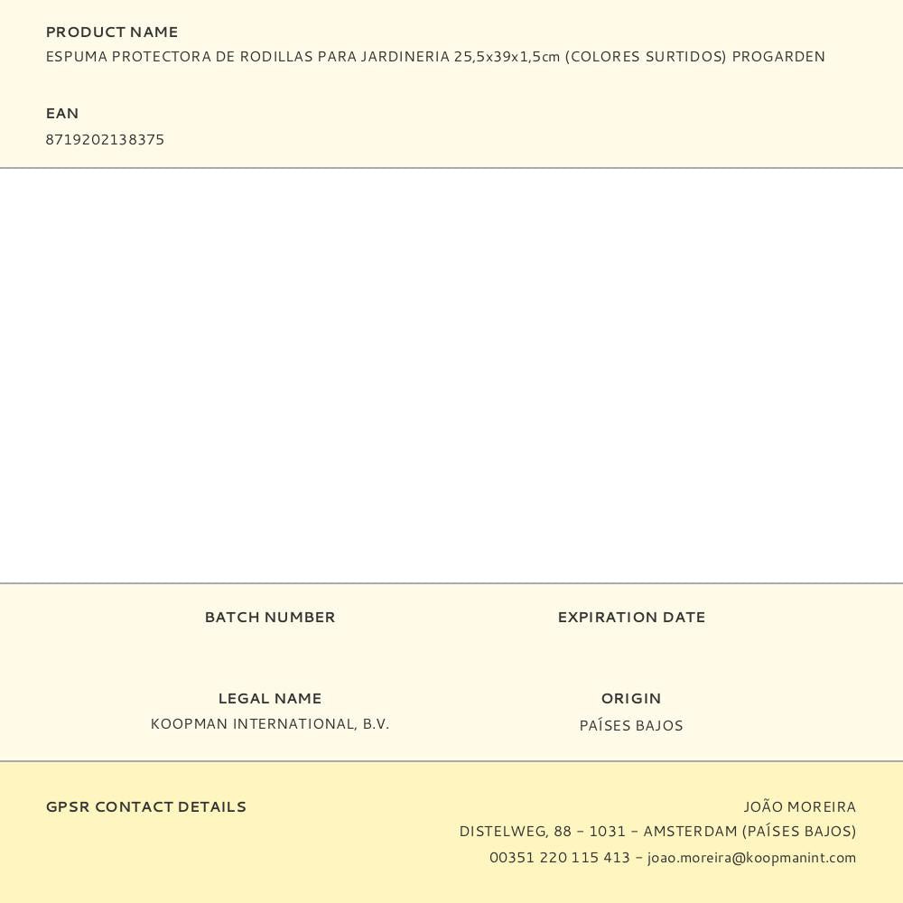 Espuma protetora de joelhos para jardinagem 25,5x39x1,5cm (largura/profundidade/altura) material: polipropileno. (cores variadas) progarden