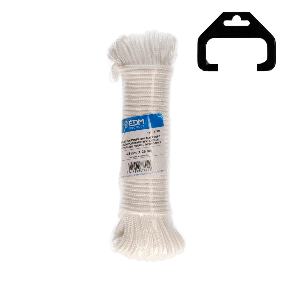Corda trançado polipropileno estendal 25m. composição: trançado polipropileno alta tenacidade com proteção solar. alma interior de pp 100% caracteristicas: suave, flexivel, boa resistência, flutuabilidad,absorção 0% utilidades: estendais exteriores e interiores, camping, nautica. 205kg ø:4.5mm
