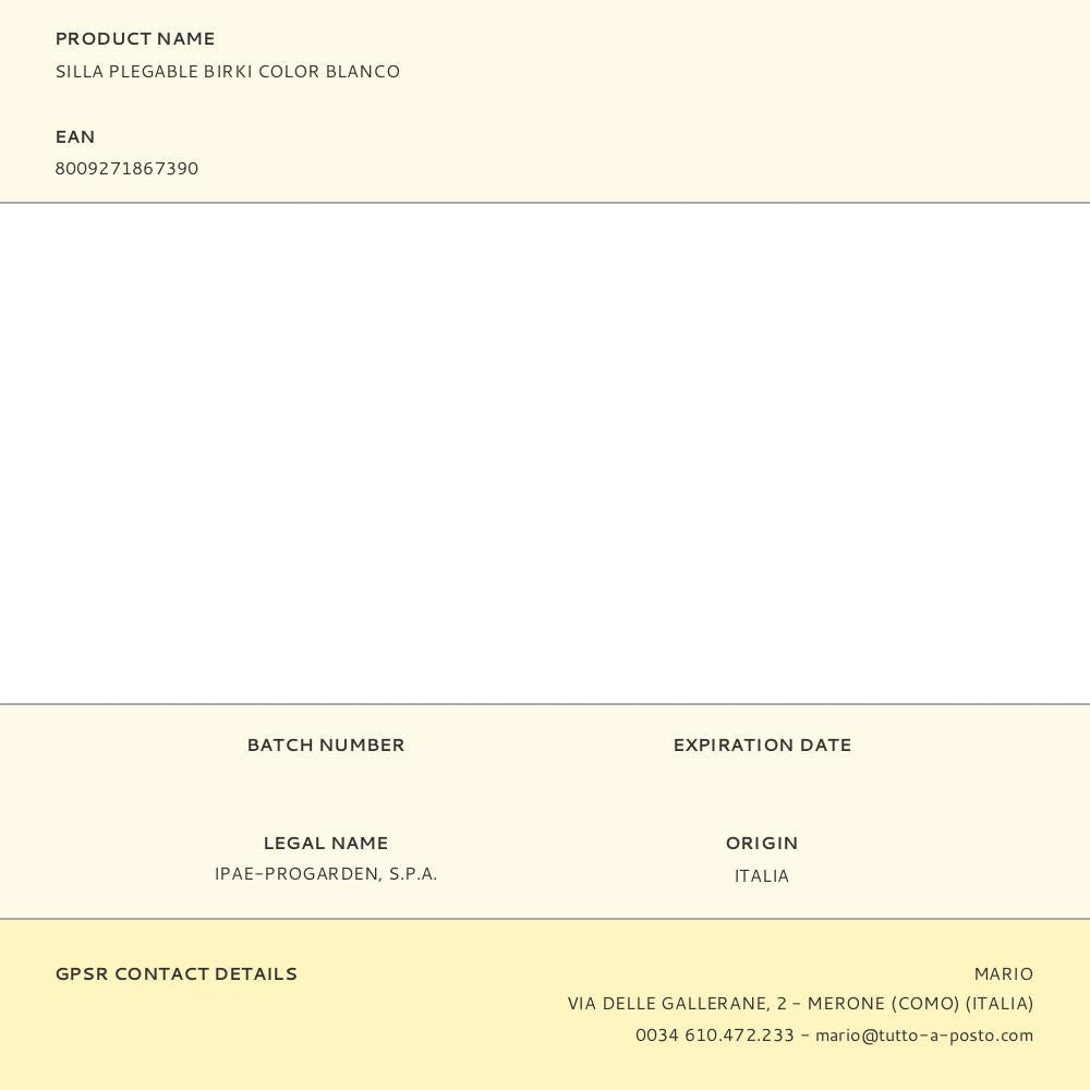 Cadeira dobrável birki, branca, 44 x 41 x 78 cm. para uso doméstico