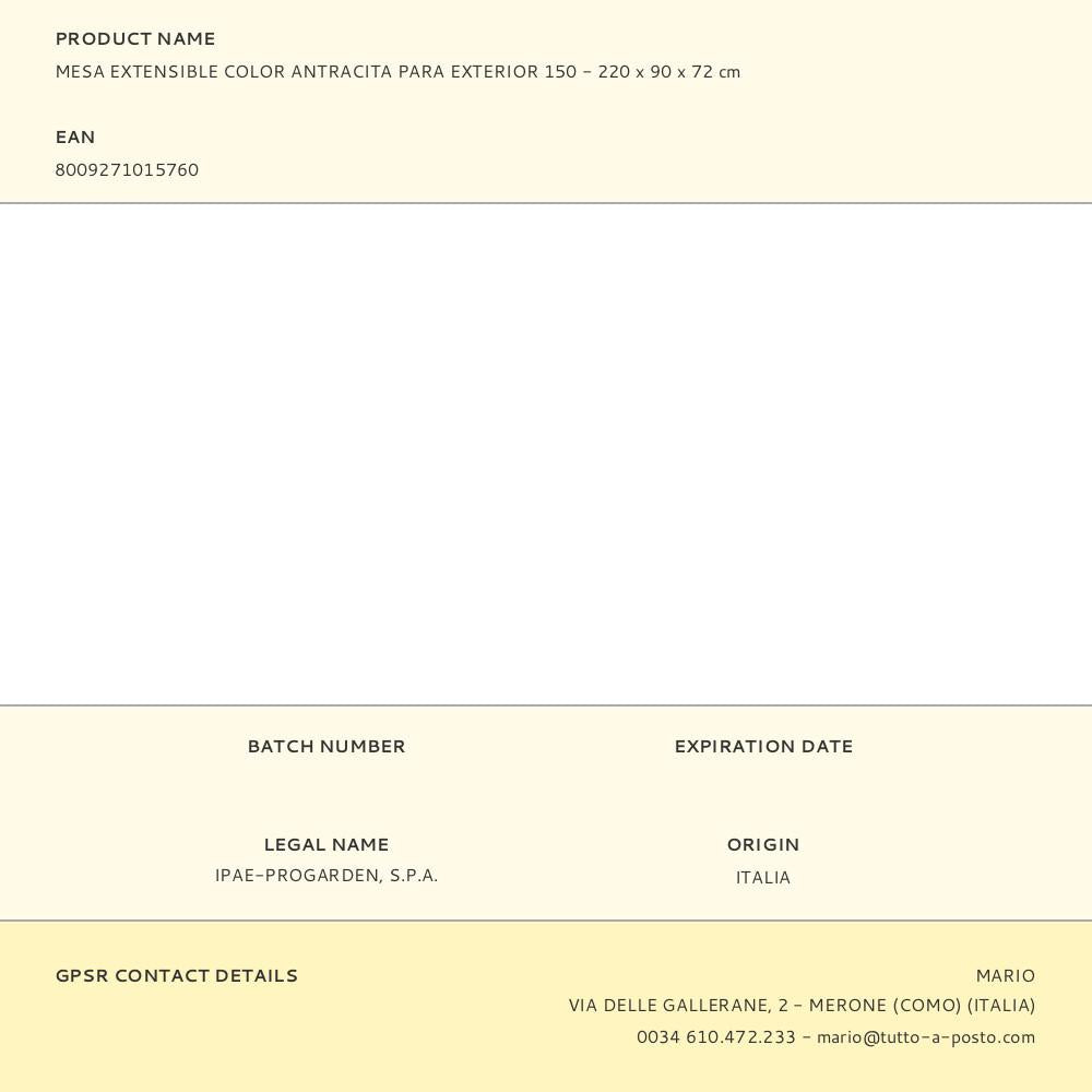 Mesa extensível indo, cor antracite, para uso externo, 90 x 150 - 220 x 72 cm