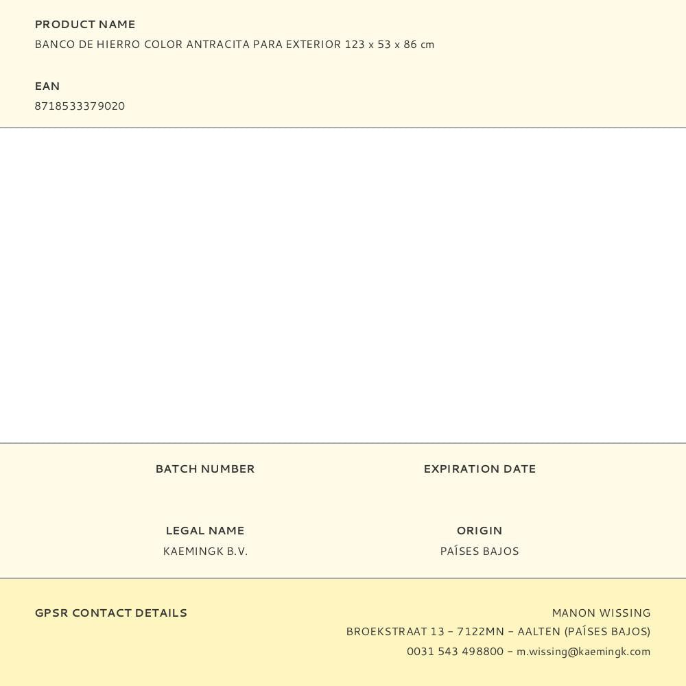 BANCO DE FERRO COR: ANTRACITE 123X53X86CM PARA EXTERIOR