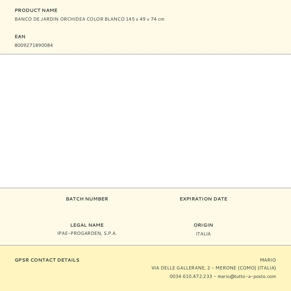 BANCO DE JARDIM COR: BRANCO 145X49X74CM MODELO: ORCHIDEA IPAE PRO