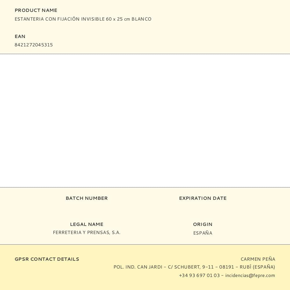 Estante com fixação invisível 60x25 branco 045315 home decor