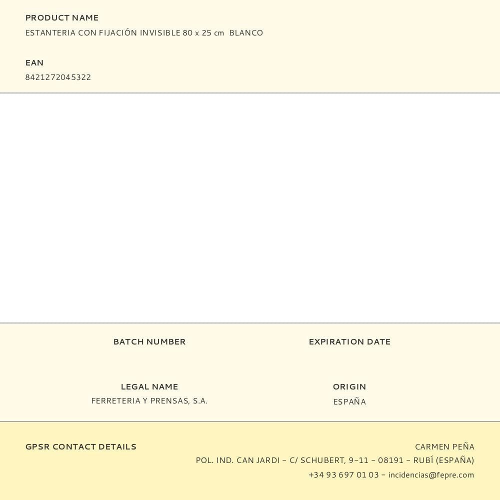 Estante com fixação invisível 80x25 branco 045322 home decor