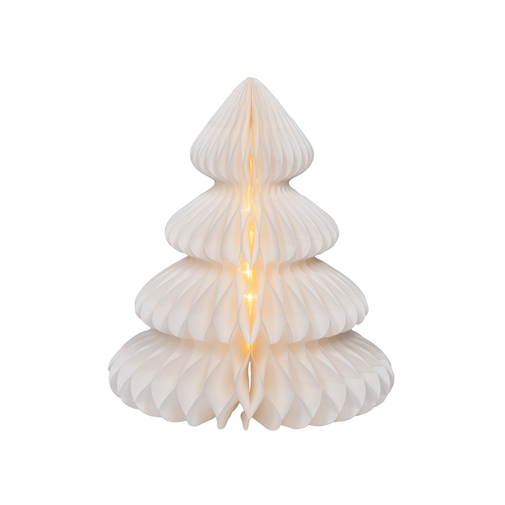 Árvore branca de papel, 40leds branco quente fixa, material: papel.fscmix100%, para interior, funciona com 3 pilhas aa (não incluídas), com temporizador 6h ligada/18h desligada, medidas: ø42x48cm