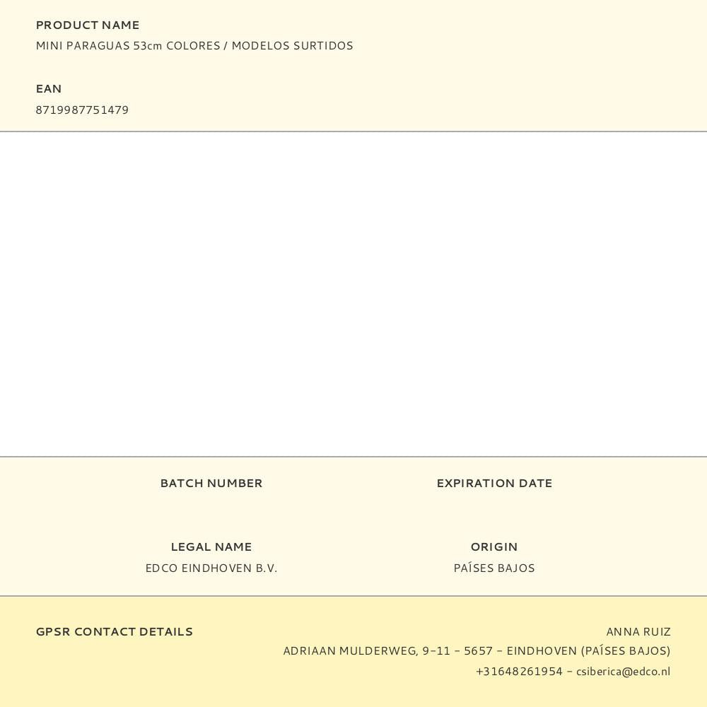 MINI GUARDA-CHUVA 53CM CORES / MODELOS DIVERSOS