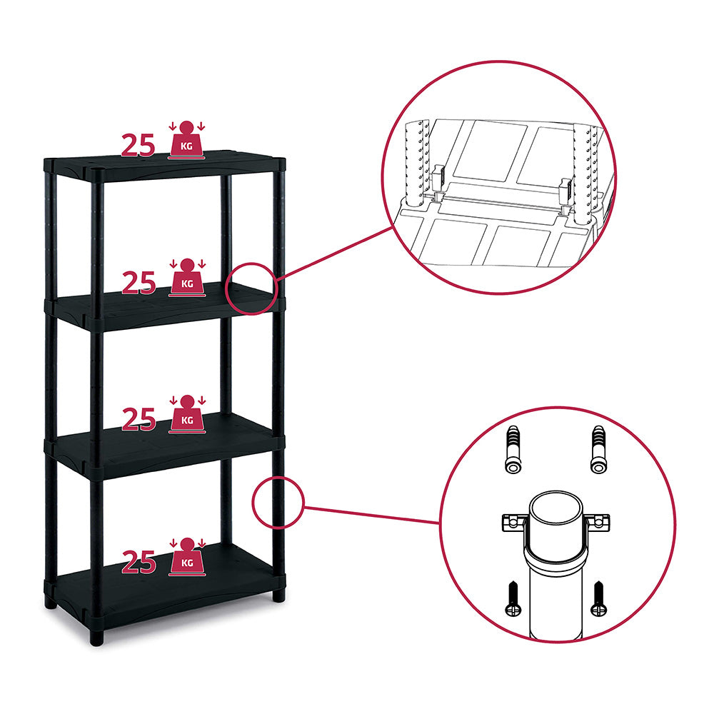 Prateleira com 4 prateleiras s-4 60x30x132cm. para o serviço pós-venda, contacte xaviermas@plasticosjobgar.es indicando nome de contacto, morada de entrega, telefone, referência do produto, referência da peça e número de peças. nenhuma alteração ou reembolso são feitas.