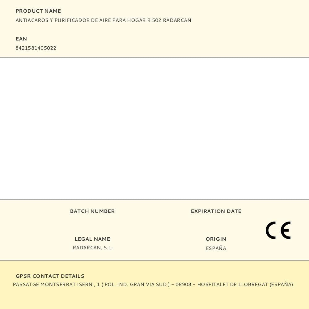 ANTI-ACAROS E PURIFICADOR DE AR PARA CASA R 502 RADARCAN