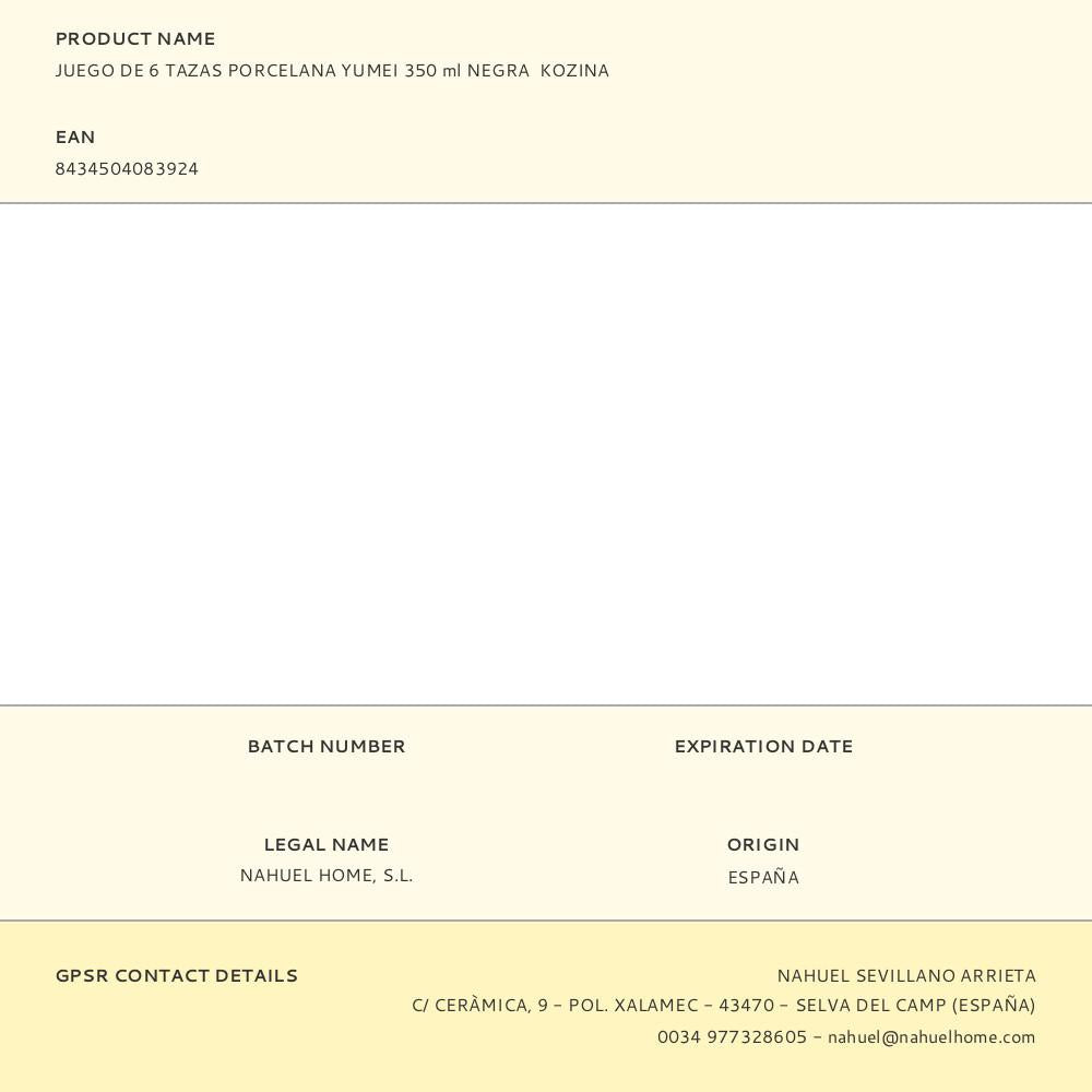 PACK 6 CHÁVENA MUG DE PORCELANA YUMEI 350ML PRETO KOZINA