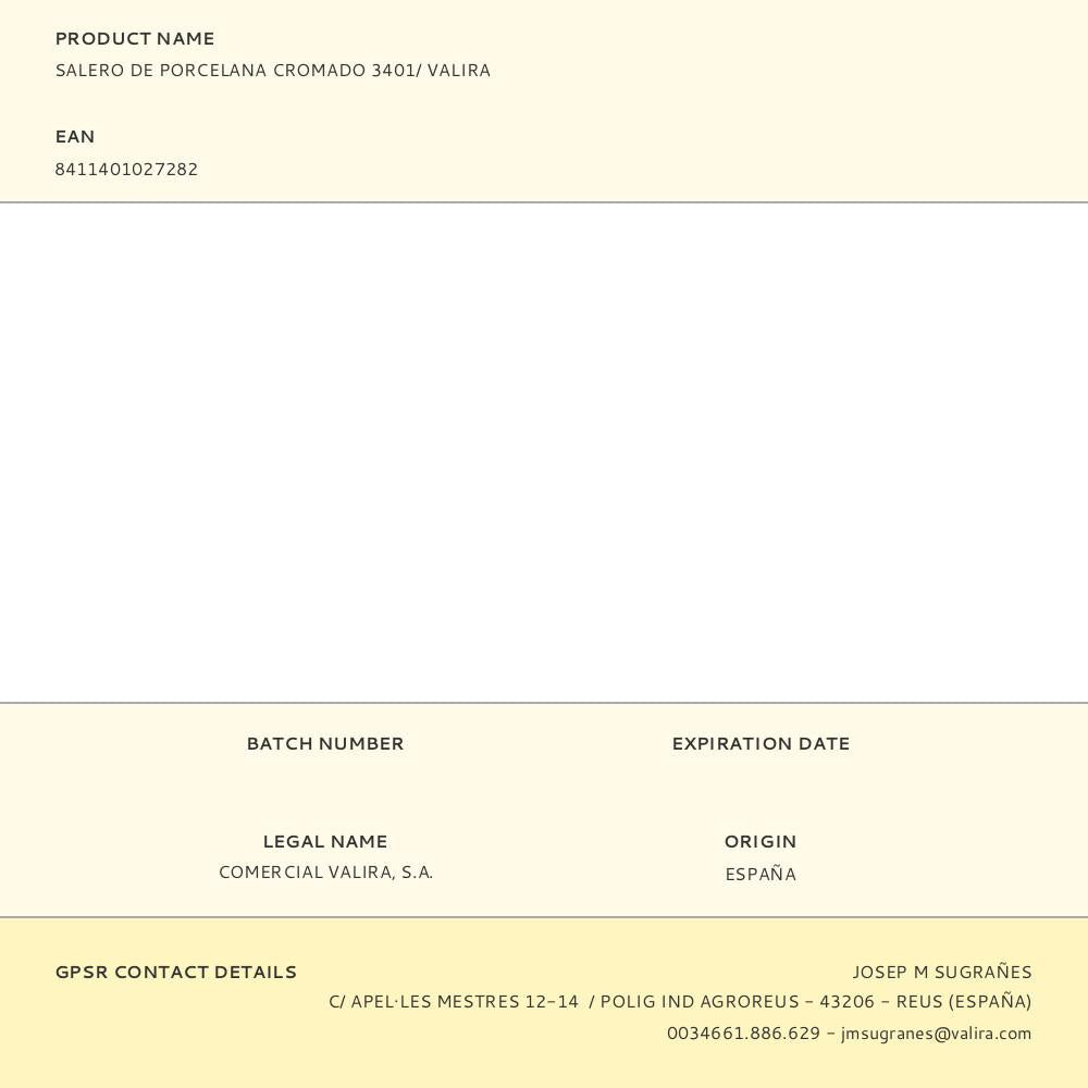 SALEIRO DE PORCELANA CROMADO 3401/ VALIRA