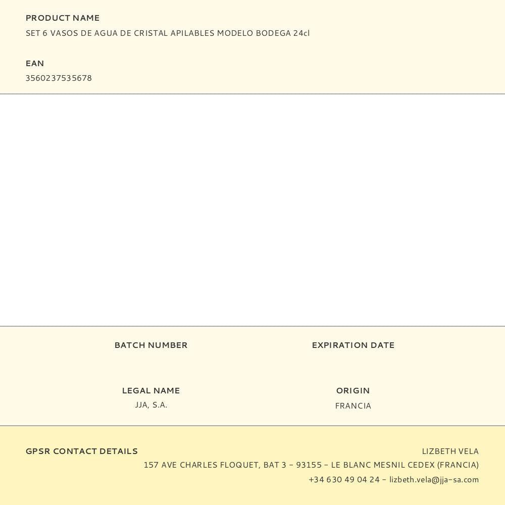 SET 6 COPOS DE AGUA DE VIDRO APILHAVEL MODELO BODEGA 24CL