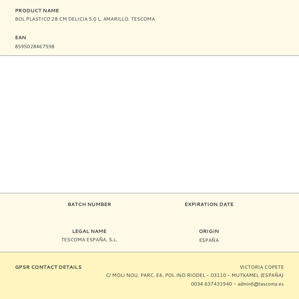 Taça em plástico delicia amarelo 28 cm 5 l. feito em plástico de excelente resistência. adequado para micro-ondas, adequado para máquina de lavar louça e frigorífico. garantia de 3 anos