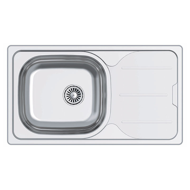 nCaracterísticasnn Fregadero - 1 Cubeta + Escurridor reversible n Acero inoxidable - Mueble de 45 cm n Sobre encimera n Una Cubeta de 340 x 380 mm n Profundidad de la Cubeta 15 cm n Radio 90 mm n Acero inoxidable AISI 304 n Grosor 0,5 mm n Accesorios: Tubo rebosadero n Dimensiones del fregadero (alto x ancho x profundidad): 435 x 760 x 150 mm n Dimensiones hueco: 740 x 415 mm (ancho x fondo) n Composición: 1cubeta+escurridornn